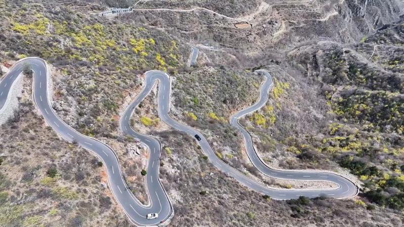 在河南新乡卫辉市,一条条便捷的公路串联起山间美景,游客在花海中感受美丽春天。